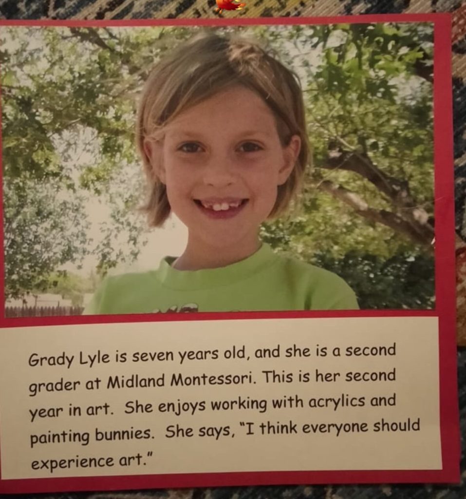 Raised in a family of artists, Grady’s journey began early — with her first art show in the first grade and a deepening passion ever since. Her inspiration flows from the world around her: the rhythm of nature, the pages of favorite books, meaningful conversations, and life’s quiet mysteries.
